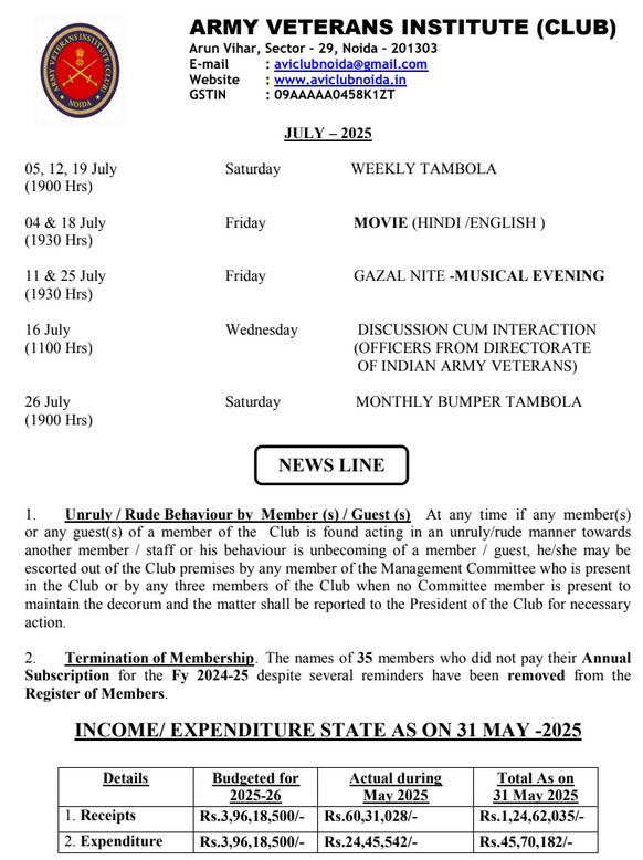 AVI PROGRAMME JULY 2024